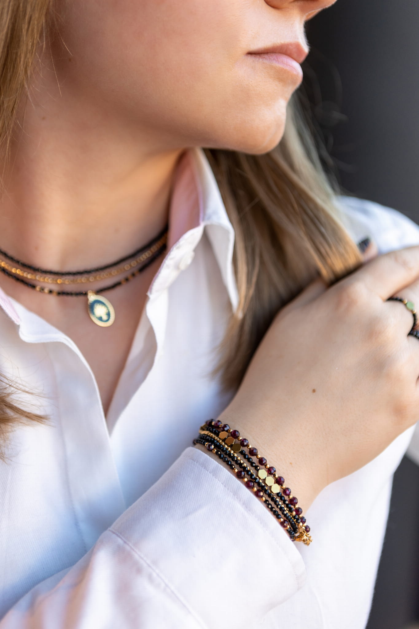 Bransoletkę z kolekcji Only z kamienia w jednym kolorze, możesz łatwo łączyć z bransoletkami, pierścionkami czy naszyjnikami z innych kolekcji. Wystarczy, że mają złote dodatki, a wszystko będzie do siebie pasować. Sprawdź, jakie to proste! Jeżeli lubisz nosić po kilka bransoletek na raz to ta bransoletka to podstawa w Twojej szkatułce.