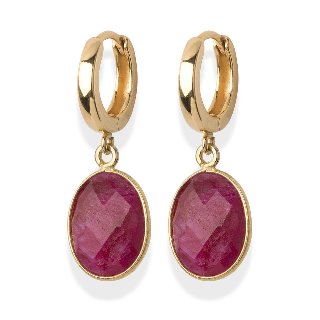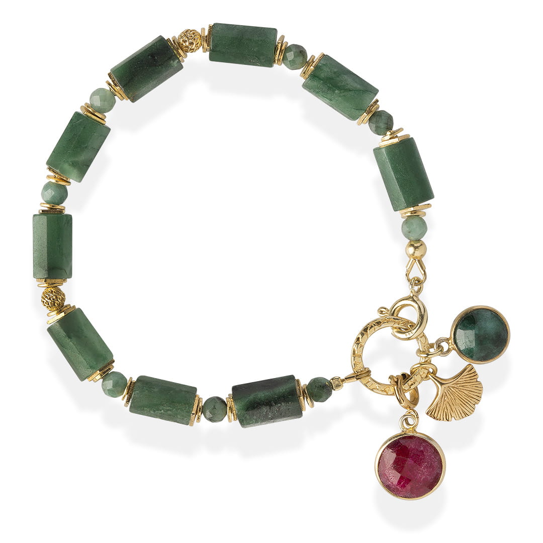 Miłość, szmaragd i rubin - zestaw biżuterii z kamieni naturalnych w postaci bransoletki i kolczyków. Całość wykończona jest pozłacanym srebrem. Idealny prezent dla żony czy partnerki, symbolizujący wierność, harmonię i pożądanie!
