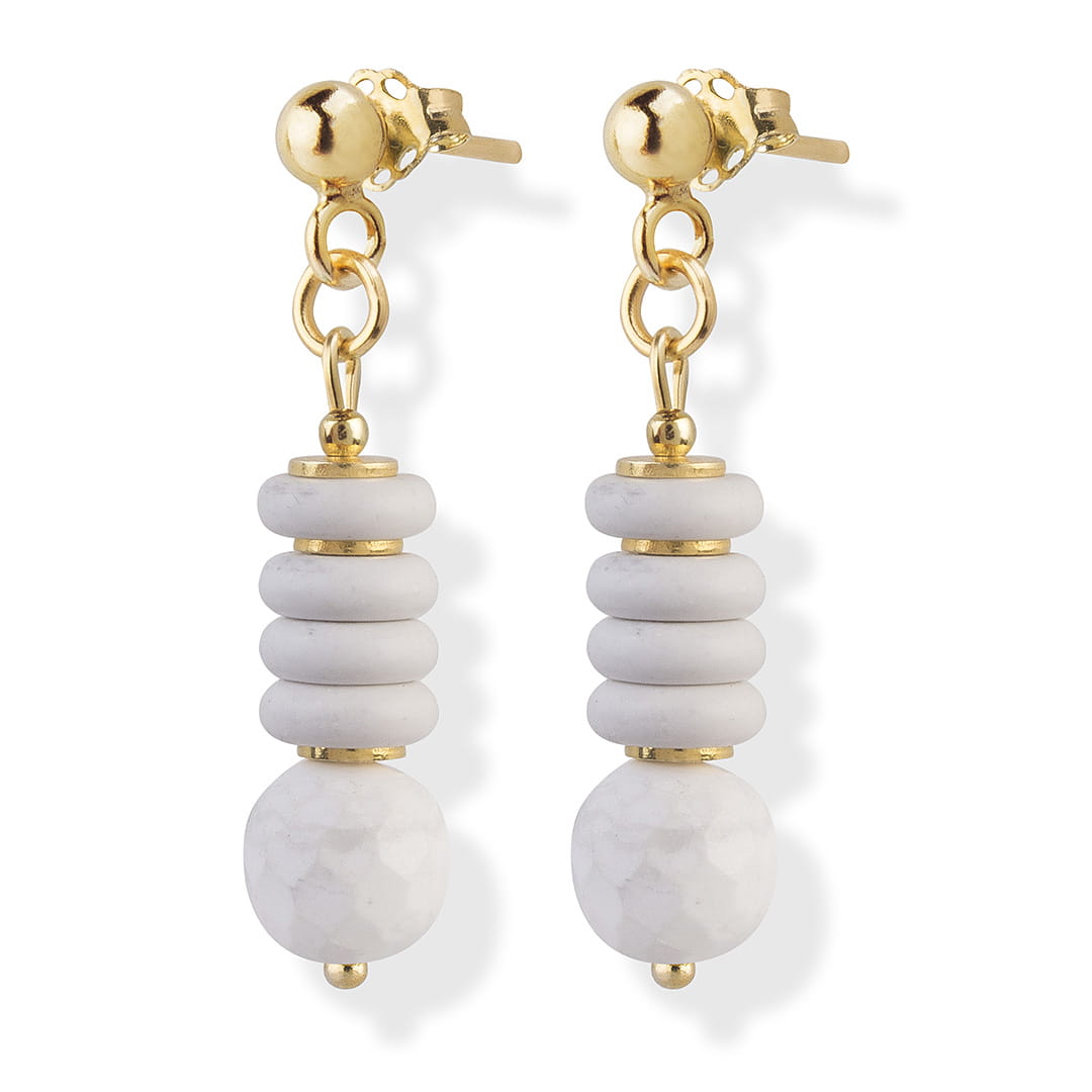 Taniej w zestawie!Pozłacane, wiszące kolczyki na lato z białymi kamieniami naturalnymi to must-have wakacyjnych stylizacji!