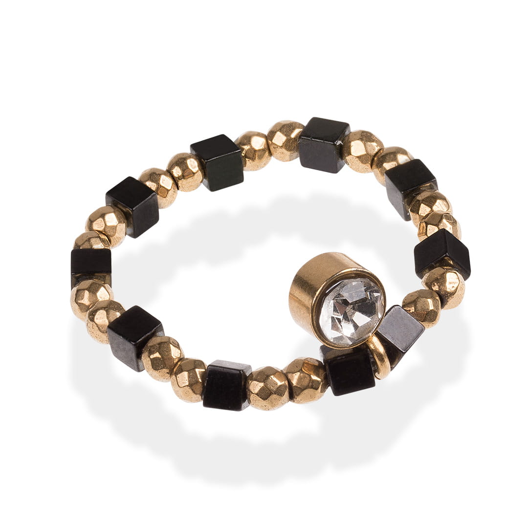Pierścionek z kamieni naturalnych hematyt złoto-czarny z cyrkonią
